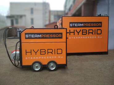Новая модель 2023 года выпуска, в отличие от более крупной модификации STEAMPRESSOR HYBRID SH-1, при той же мощности обладает значительно меньшими габаритами. Длина парогенератора – 1500 мм, ширина – 800 мм, высота - 1100 мм. Новый парогенератор снабжен колесами и обладает высокой мобильностью.